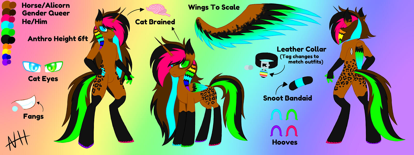 Colour swatches, small details, and small texts of information about your character for a reference sheet are free!